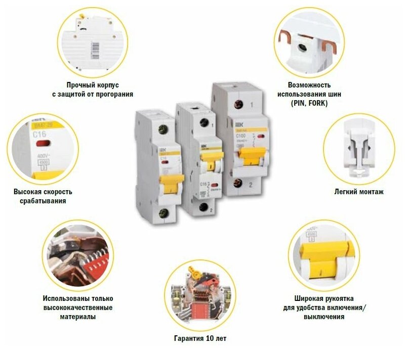 Преимущества IEK ВА47-60M 3Р 32А 6кА С MVA31-3-032-C