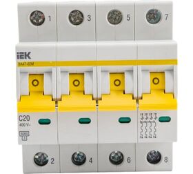 Преимущества IEK ВА47-60M 4Р 20А 6кА С MVA31-4-020-C