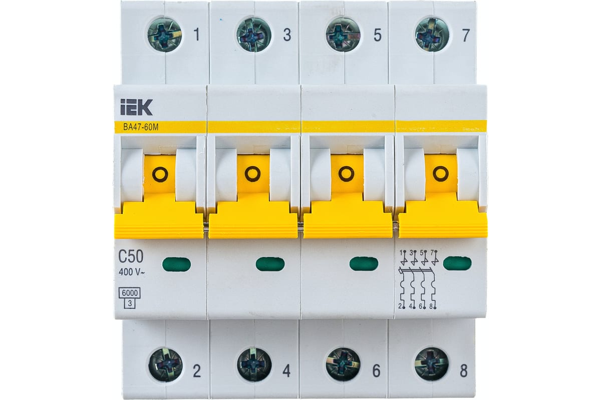 Технические характеристики IEK ВА47-60M 4Р 50А 6кА С MVA31-4-050-C