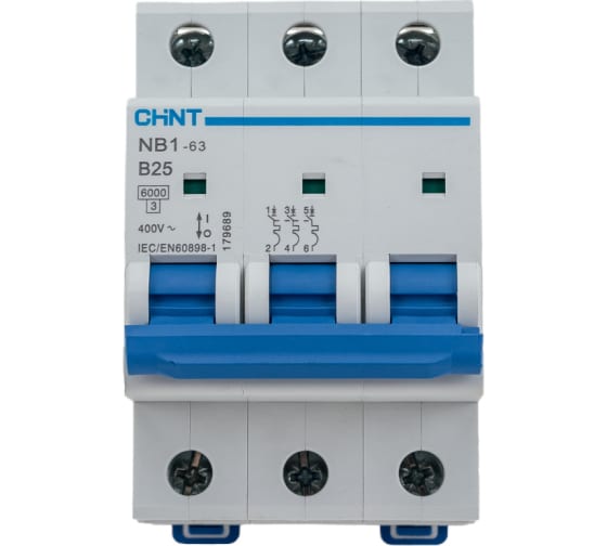 Автоматический модульный выключатель CHINT 3п B 25А 6кА NB1-63 (R) 179689 предназначен для защиты людей от поражения электрическим током при случайном непреднамеренном прикосновении к токоведущим частям электрооборудования.