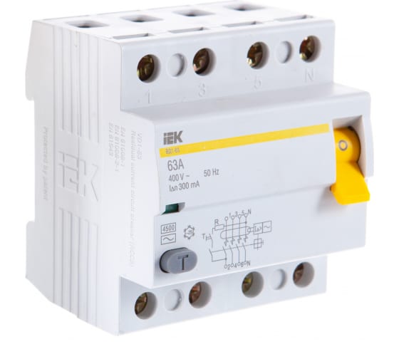 Технические характеристики IEK ВД1-63 4п, AC, 63А, 300мА MDV10-4-063-300