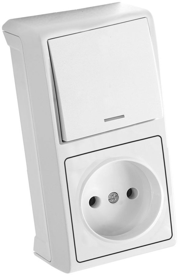 Блок Выключатель с подсветкой + Розетка, вертикальный.