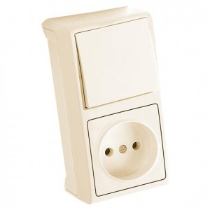 VERA Блок Выключатель+Розетка,вертикальный, кремовый Моноблок для наружнего монтажа VERA Блок Выключатель+Розетка,вертикальный, кремовый