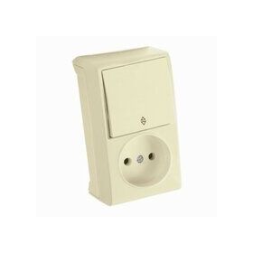 VERA Блок переключатель на 2 направления+Розетка, вертикальный, кремовый Моноблок для наружнего монтажа VERA Блок переключатель на 2 направления+Розетка, вертикальный, кремовый