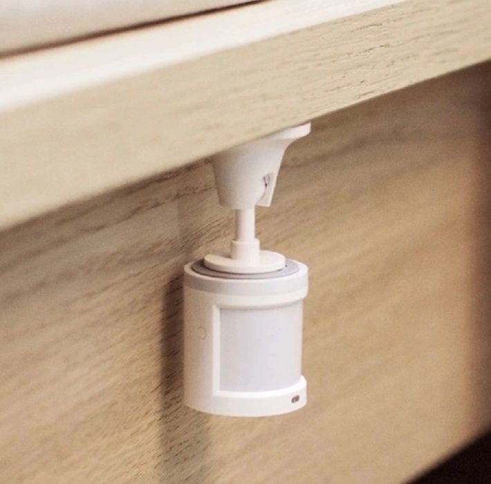 Возможности: Датчик движения крепится на любую поверхность с помощью клейкого стикера из комплекта. Дальность обнаружения — 7 метров, угол обзора — 170 градусов. Оптимальное место для датчиков на шкафу или под потолком, откуда им будет доступна наиболее полная картина.Датчик может отправлять сигнал на Aqara Hub