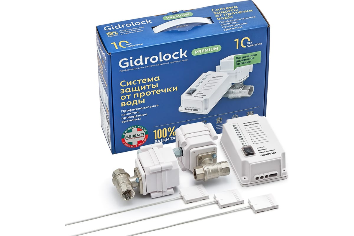 Система защиты от протечек воды Gidrolock Premium BUGATTI 1/2 31201021 предназначен для обнаружения и локализации протечек воды в системах водоснабжения и отопления жилых, загородных домов, офисных зданий, магазинов, даже в момент отключения электроэнергии.