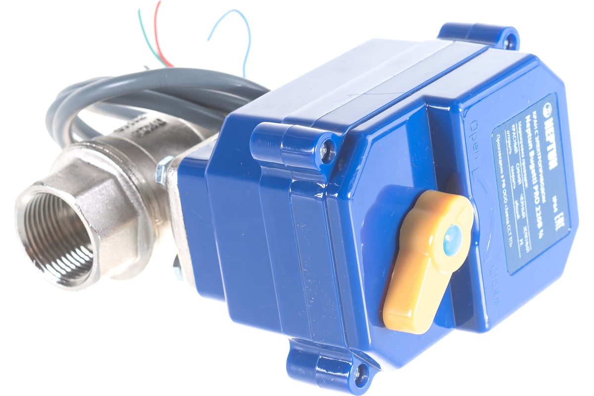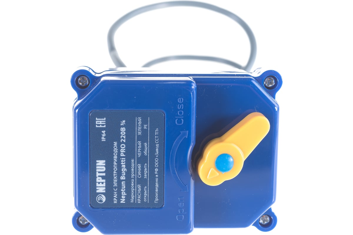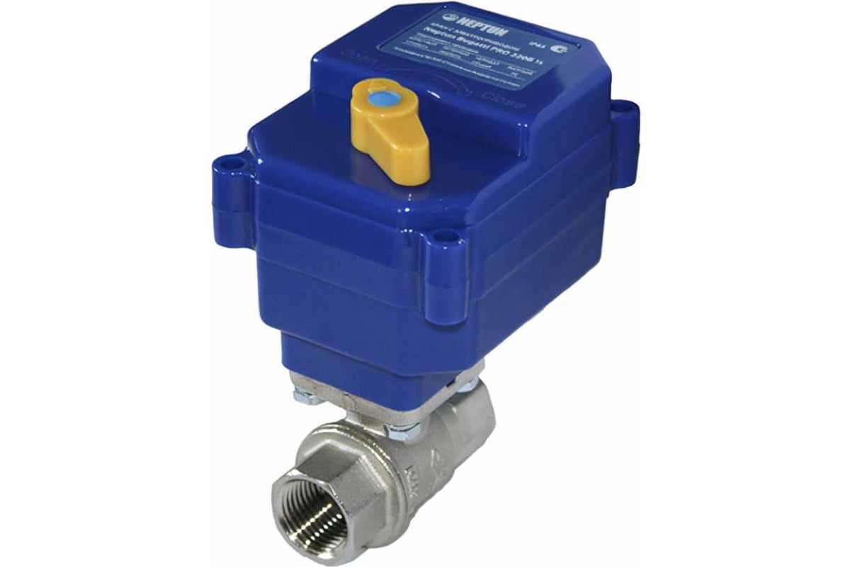 Кран с электроприводом Neptun Bugatti Pro 220B 3/4 используется в системах контроля протечки воды, в системах обогрева, фанкойлах, тепловых насосах и т.п. Кран предназначен для блокировки подачи воды при возникновении протечки. Движение шарового крана при закрытии и открытии обеспечивает электропривод. Электропривод выполнен в герметичном корпусе IP65. Предусмотрена возможность ручного открытия крана. Корпус крана изготовлен из горячекованой латуни, выдерживает давление в 40 бар.