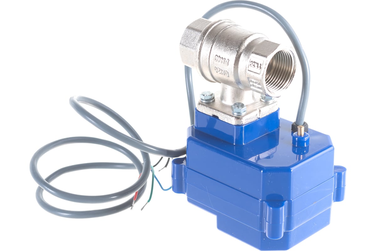 Диаметр подключаемой трубы 3/4". Напряжение питания 220В. Максимальная температура рабочей среды до +120°С. Длина соединительного провода 0.5 м.