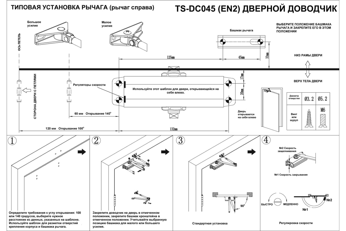 Дверной доводчик Tantos TS-DC045 черный - это доводчик дверной с усилием EN2 для дверей весом до 50 кг. Предназначен для плавного закрытия двери и гарантированного срабатывания запирающего устройства (замка, защелки). Имеет две регулировки: скорости закрывания и скорости доводки. Идеальное решение для легких алюминиевых дверей.