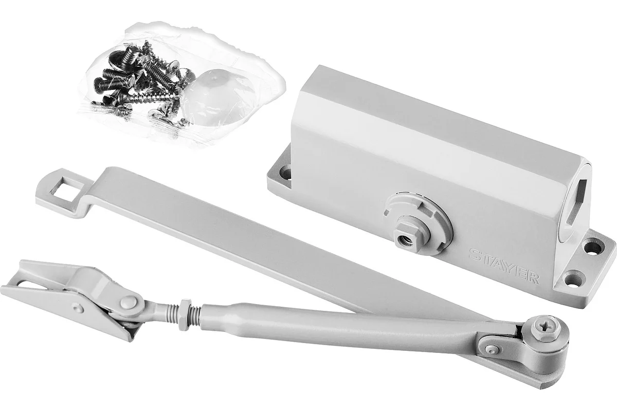 Технические характеристики доводчика STAYER для дверей массой до 100 кг, цвет белый