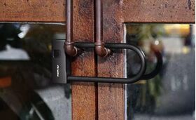 Скоба для замка выполнена из закалённого стального прута, защищенного от коррозии. Она сопротивляется давлению до 14 тонн, создаваемого гидравлическими ножницами, ножовкой по металлу и электродрелью.