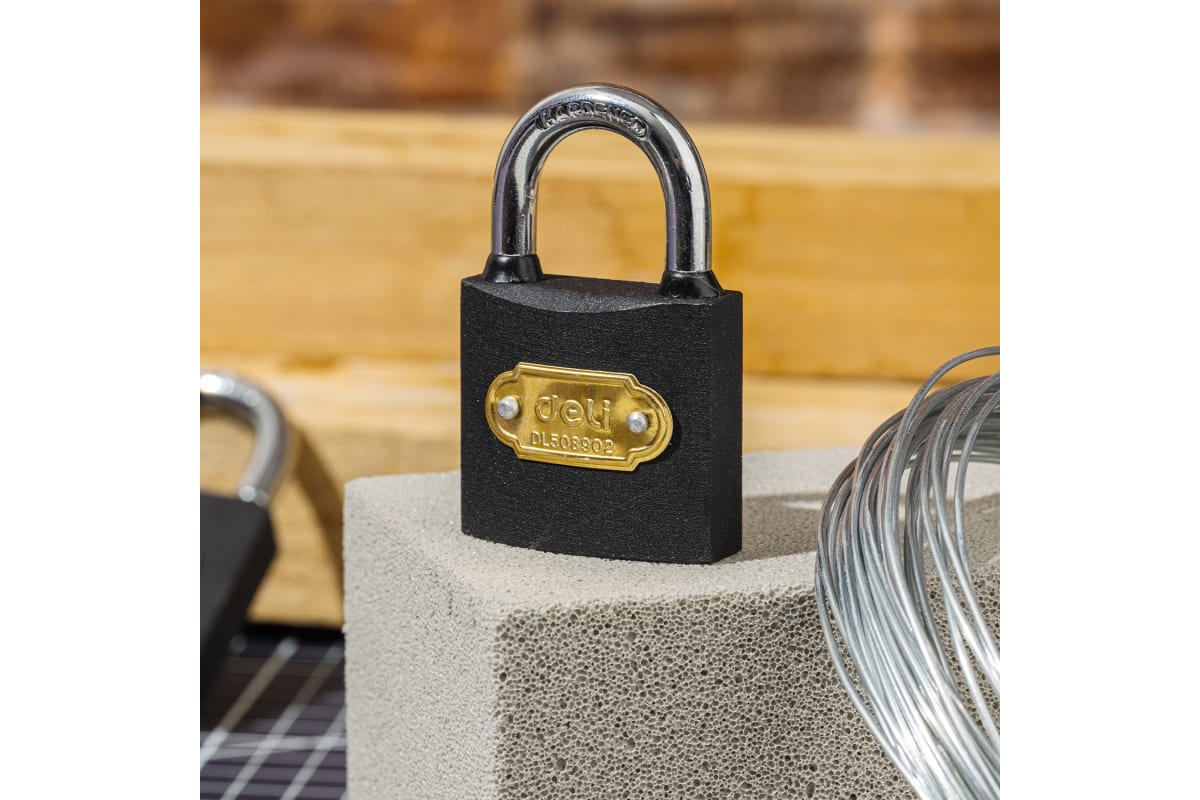 Замок навесной Deli DL508902 предназначен для запирания подсобных помещений, гаражей, калиток, оконных решеток, почтовых ящиков и пр.