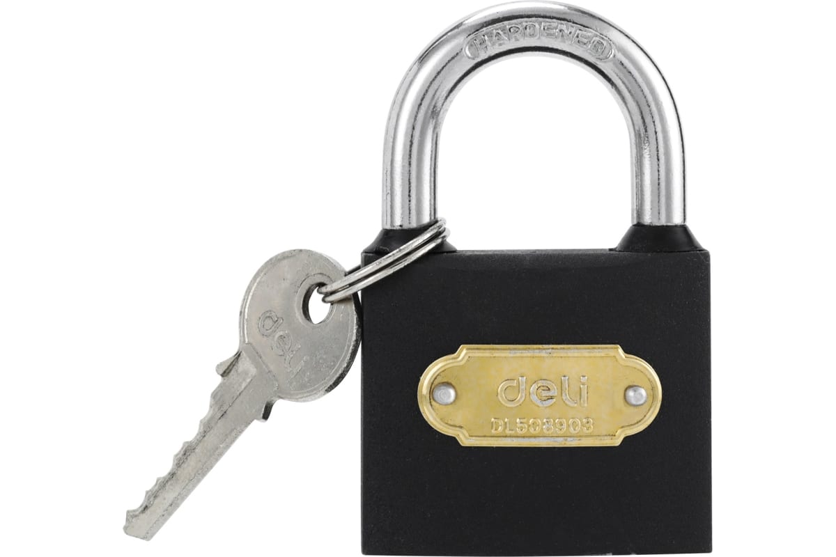 Замок навесной Deli DL508903 предназначен для запирания подсобных помещений, гаражей, калиток, оконных решеток, почтовых ящиков и пр.