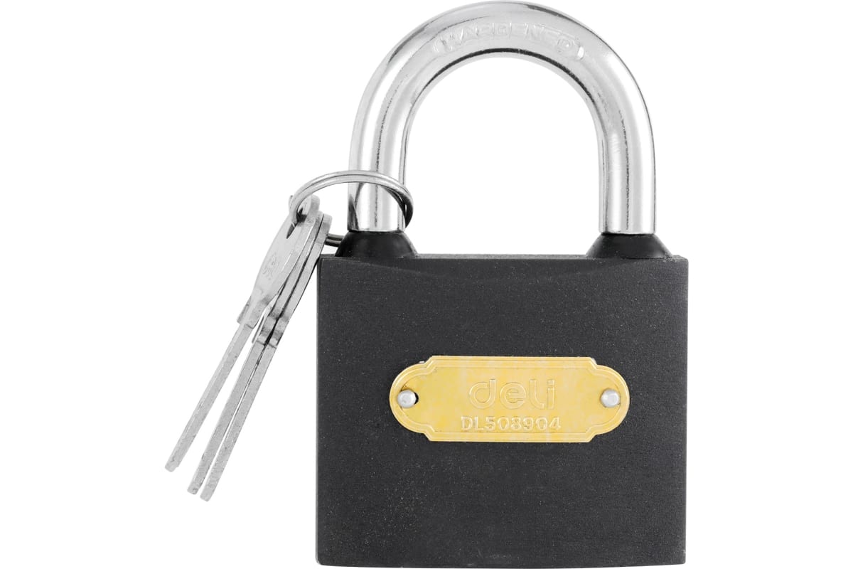 Замок навесной Deli DL508904 предназначен для запирания подсобных помещений, гаражей, калиток, оконных решеток, почтовых ящиков и пр.