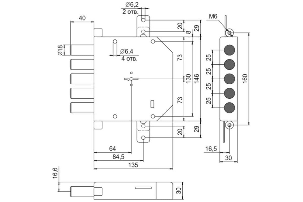5 круглых ригелей диаметром 18 мм.