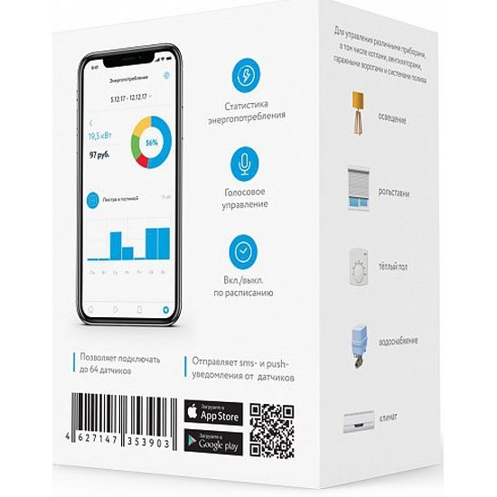 Удаленное управление освещением и питанием любых электроприборов мощностью до 3 кВт с помощью мобильного приложения. Функция измерения электроэнергии покажет мгновенную мощность и энергопотребление за данный период. Блок поддерживает подключение внешних датчиков безопасности
