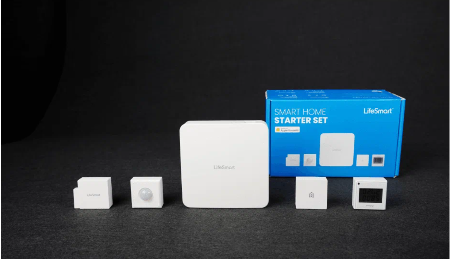 Комплект умного дома LifeSmart Starter Kit (LS215) позволяет удаленно контролировать работу различных устройств: сплит-систем, обогревателей и ламп. В наборе поставляются сенсоры, реагирующие на появление движущегося объекта, анализирующие температуру воздуха и уровень влажности, регистрирующие открывание окон и дверей. В комплекте также есть центральная станция, позволяющая настроить основные рабочие параметры, и пульт для дистанционного управления. Благодаря наличию таймера пользователь может запрограммировать активацию и отключение устройств на определенное время. Станция также поддерживает функцию голосового управления.
