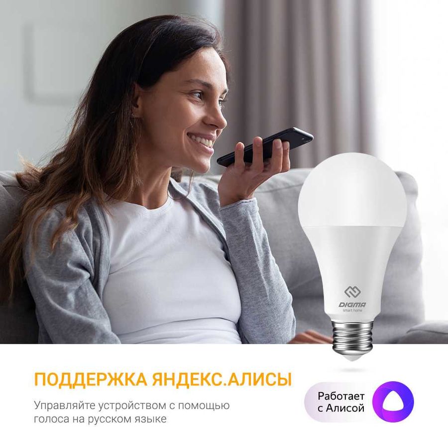 Лампы серии Digma DiLight предназначены для использования в качестве источника освещения внутри помещений. Устройства снабжены функцией дистанционного контроля через сеть интернет посредством мобильного приложения.
