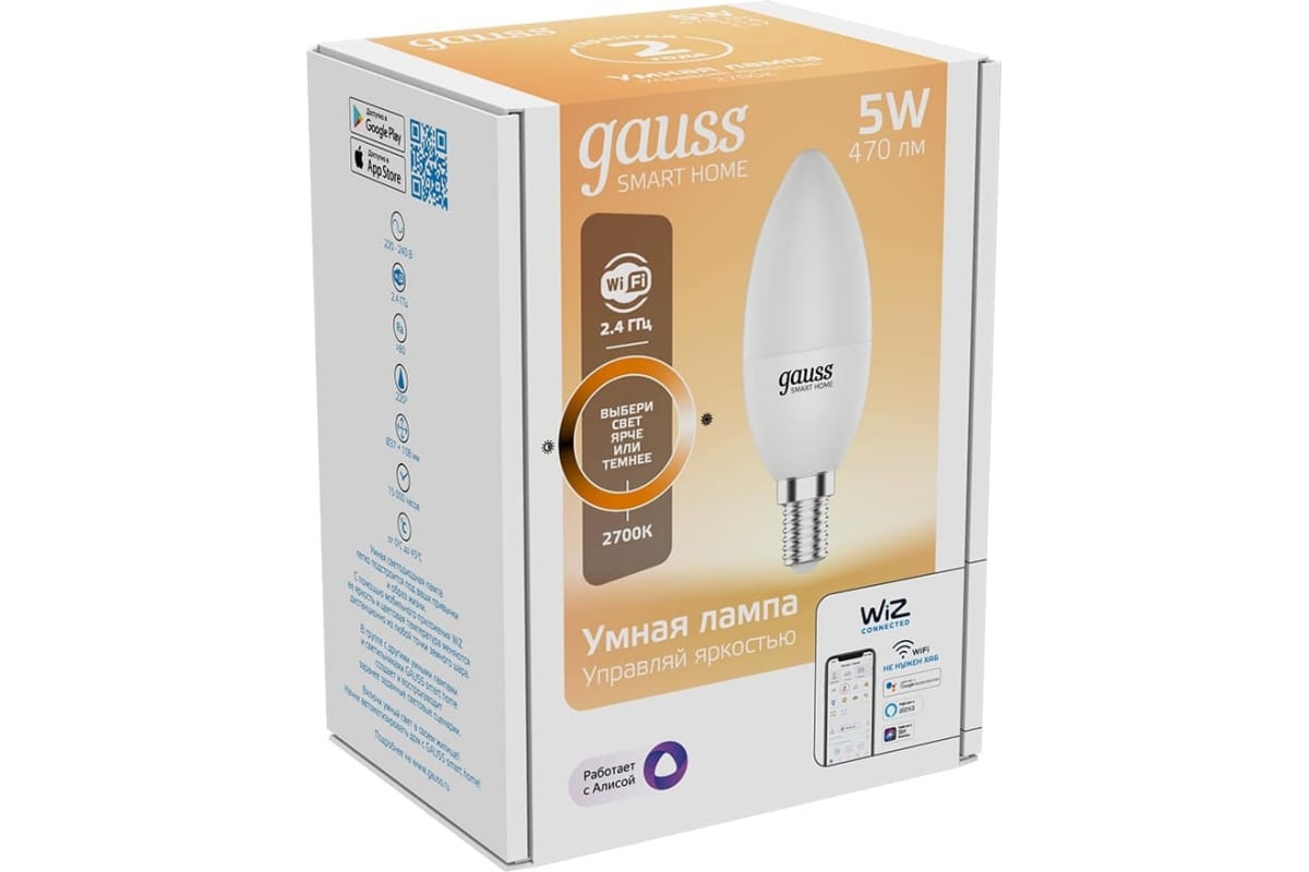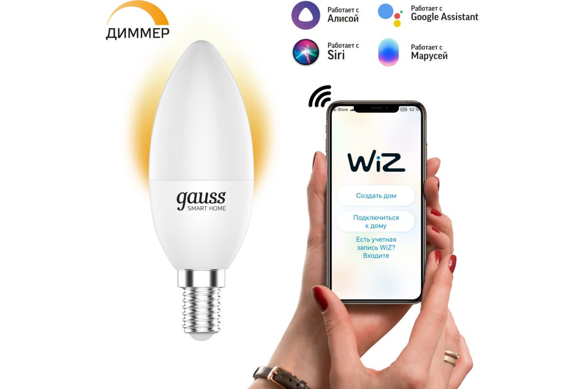 Умная Wi-fi лампочка Gauss, Smart Light DIM E14 C37 5 Вт 2700К 1/10/40 1100112: