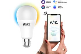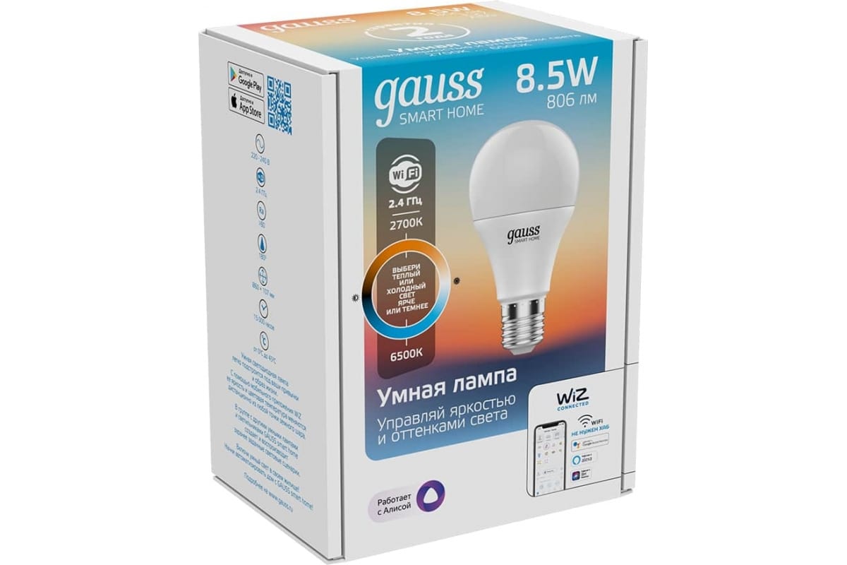Умная Wi-fi лампочка Gauss, Smart Light ССТ DIM E27 A60 8,5 Вт 2700-6500K, диммируемая с изменением температуры, управление голосом/смартфоном 1130112: