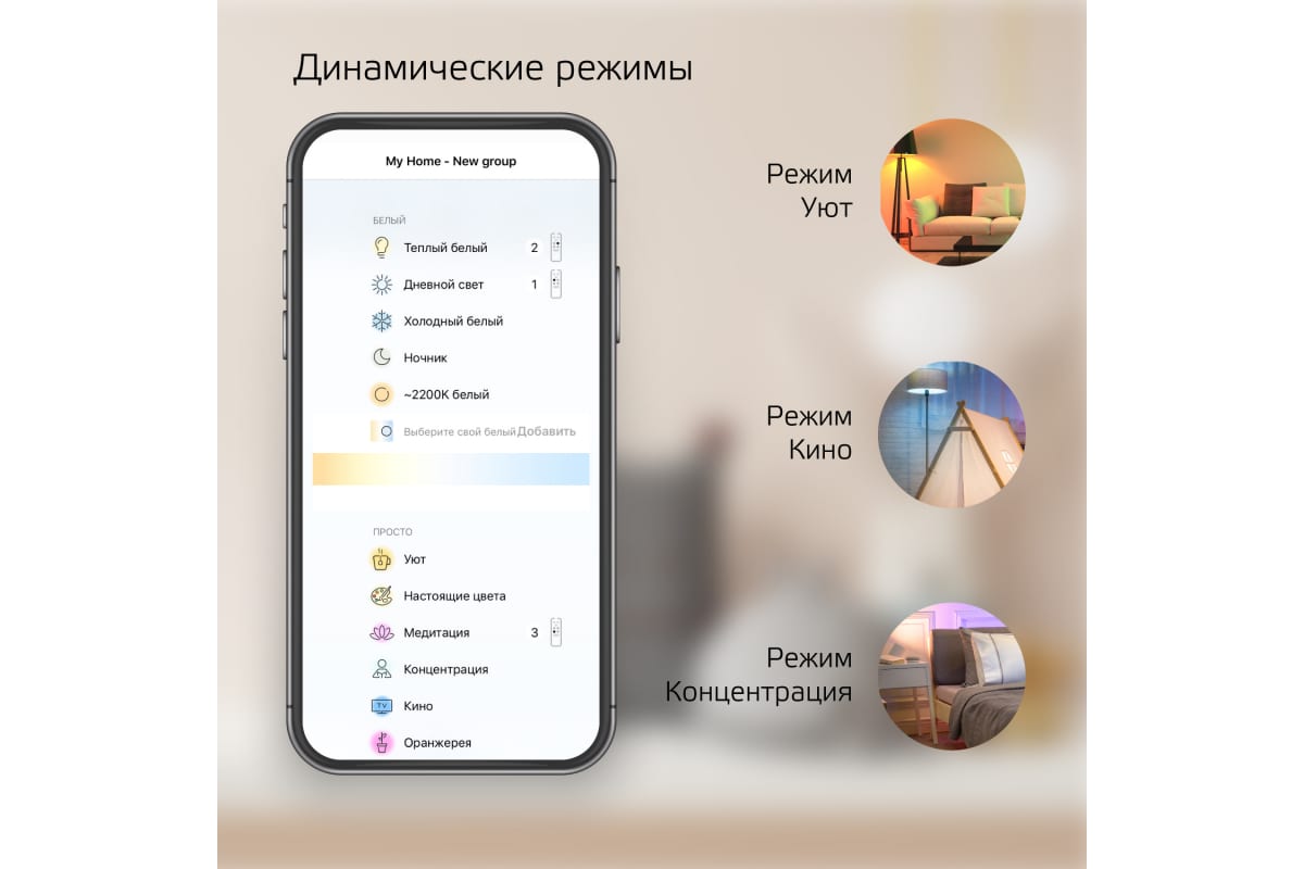Дистанционное управление: управляйте светом через мобильное приложение или голосовой помощник (Алиса, Siri, Google, Маруся).