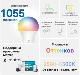 Поддержка протокола Matter — обеспечивает совместимость с другими устройствами, поддерживающими этот стандарт. Расписание и таймер — составьте расписание, чтобы свет автоматически зажигался и гас в нужное время на заданной яркости.
