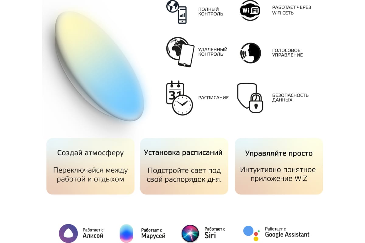 Дистанционное управление: управляйте светом через мобильное приложение или голосовой помощник (Алиса, Siri, Google, Маруся).