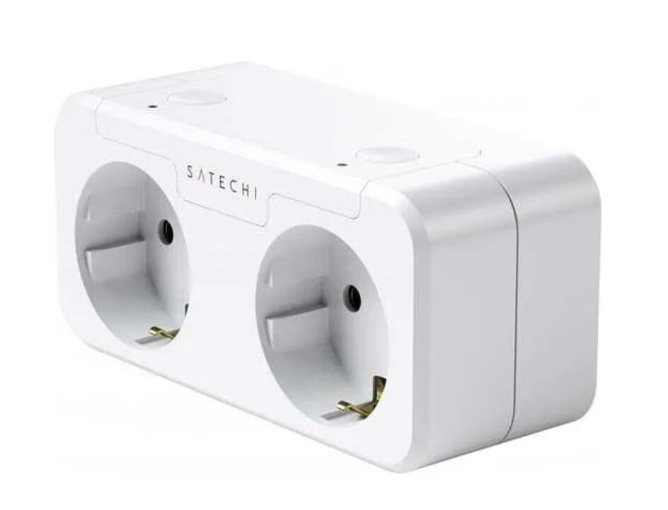 Satechi Dual Smart Outlet Apple HomeKit представляет собой умную розетку с Wi-Fi подключением и поддержкой голосового управления. Она подключается в обычные розетки домашней электросети и позволяет удаленно управлять бытовой, климатической и любой другой техникой. Установив фирменное ПО на свой коммуникатор под управлением iOS, вы сможете создавать сценарии совместной работы устройств, контролировать их энергопотребление и интегрировать в системe «умного дома» Apple Homekit. Дизайн Wi-Fi-розетка Satechi Dual Smart Outlet Apple HomeKit выполнена в стильном обтекаемом корпусе из прочного пожаробезопасного пластика. Она имеет встроенную защиту от перепадов напряжения, перегрузки и короткого замыкания. Также ее можно использовать в электросетях с заземлением. Умная розетка позволит организовывать сценарии по поддержанию комфортного климата в помещении, создавать видимость присутствия тогда, когда вас нет дома, а также значительно экономить электроэнергию, используя работы включения по расписанию.