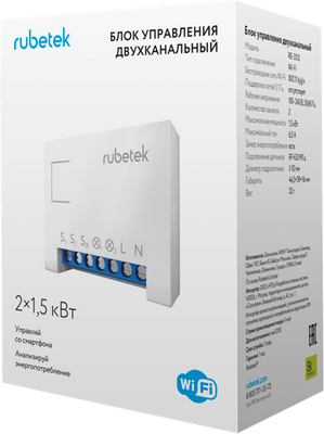 Блок управления Rubetek RE-3312 - это компактное устройство (двухканальное wi-fi реле), позволяющее управлять освещением, кранами защиты от протечки, тёплым полом или любой техникой в доме с помощью мобильного приложения.