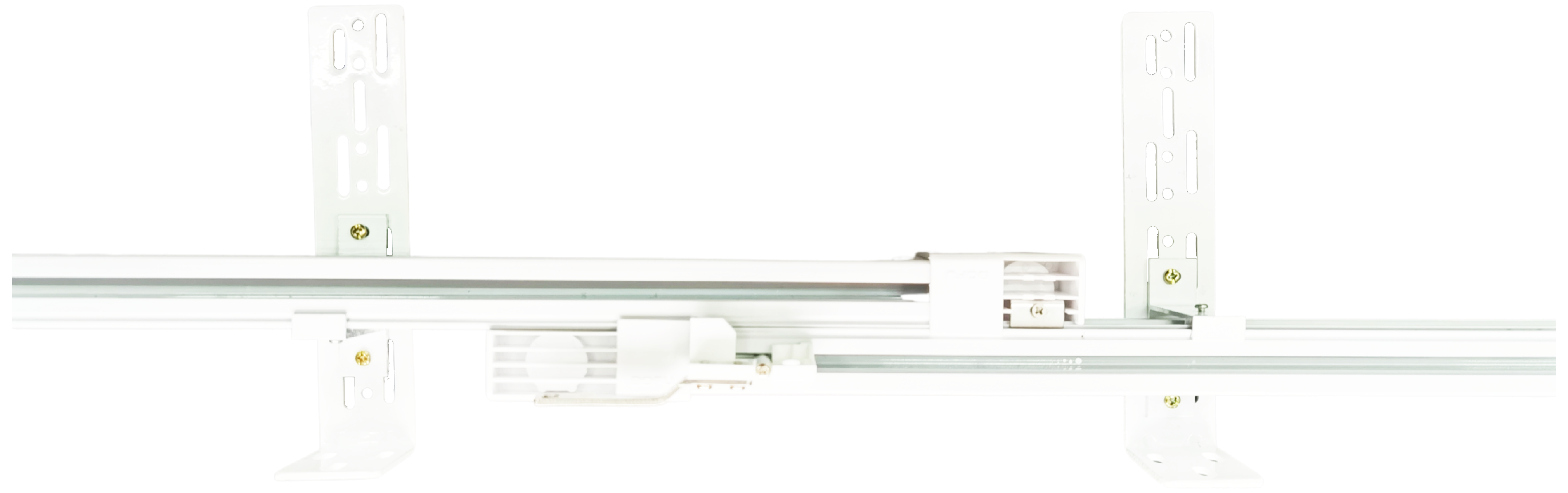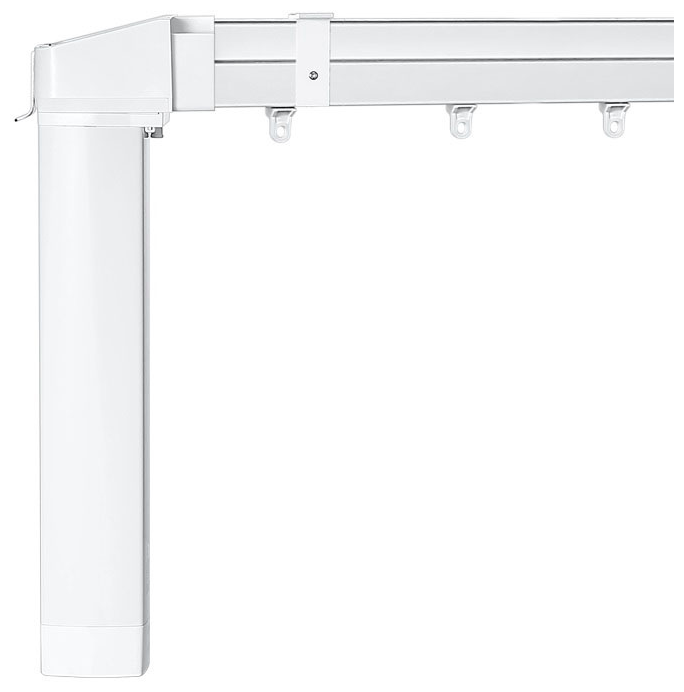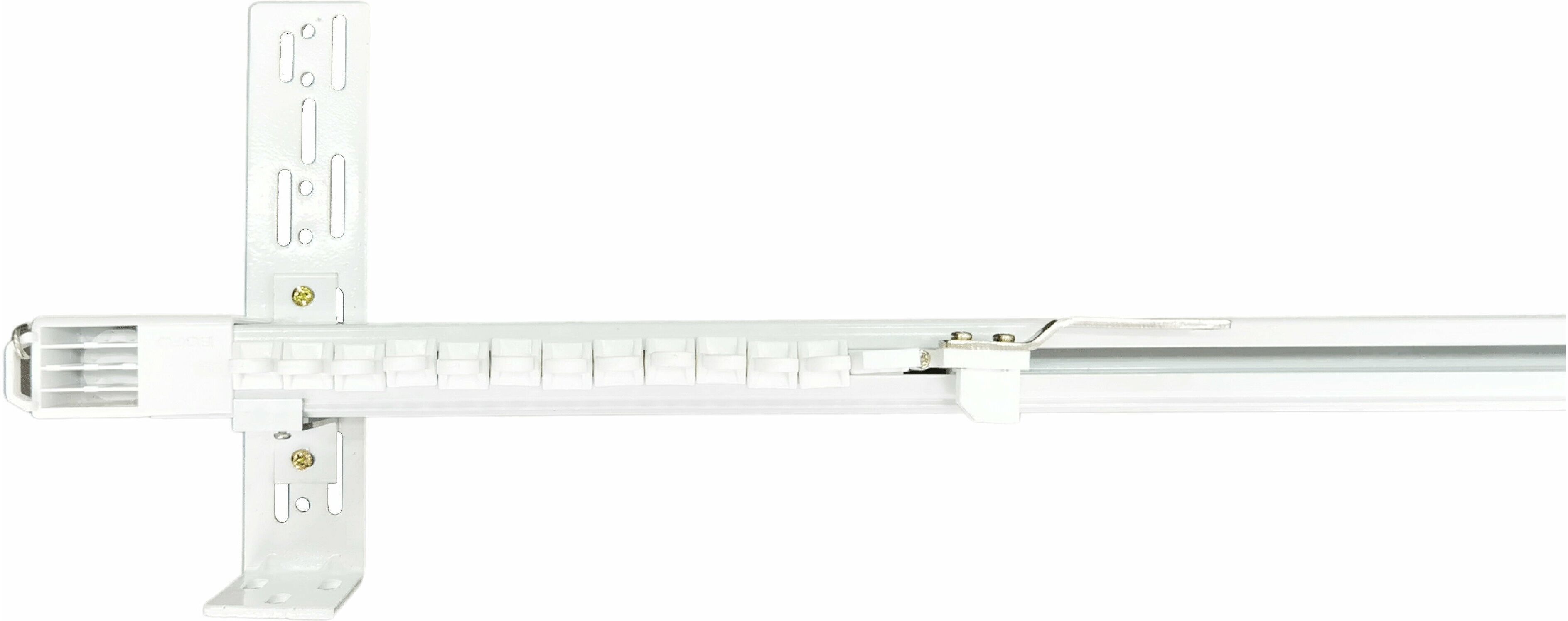 Карниз работает с мотором для раздвижных штор Aqara Curtain Controller (Zigbee). Универсальная конструкция, которая раздвигается на длину от 1,8 до 3.3 м. Крепится на стену или потолок на кронштейны, которые идут в комплекте.
