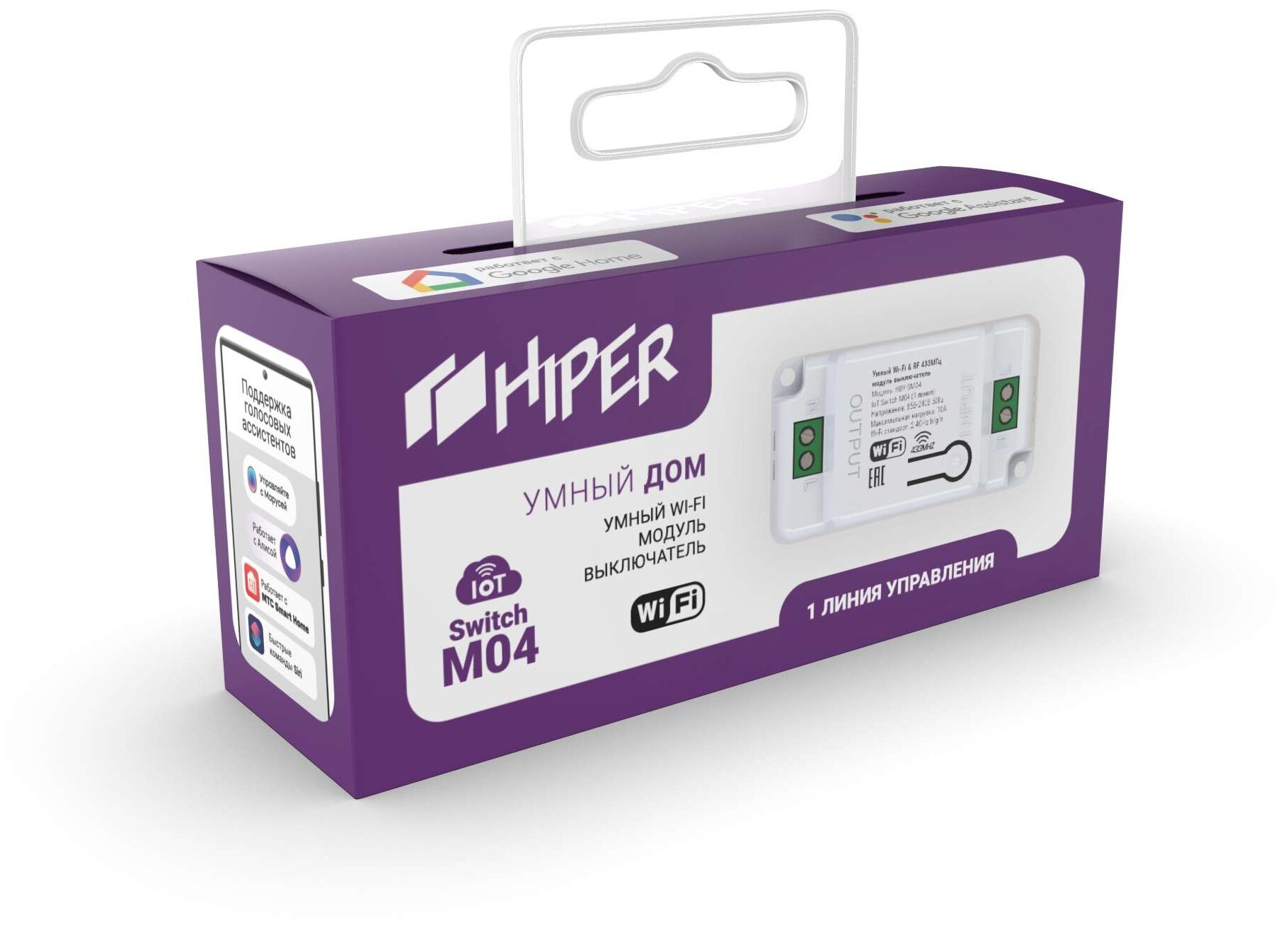 HIPER IoT Switch M04 - это одно из устройств экосистемы умного дома HIPER. Модуль подключается к электропроводке и управляет питанием присоединенного устройства — люстры, розетки или другого прибора. Вместе с модулем обычное устройство становится умным: им можно управлять дистанционно с помощью нашего приложения HIPER IoT из любой точки планеты, а также с помощью голосовых помощников.