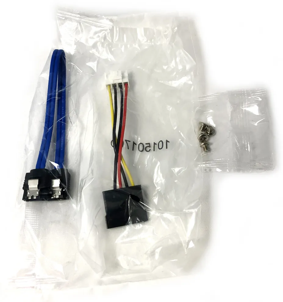 видеорегистратор, блок питания, мышь, кабели питания и SATA для жесткого диска, винты для жесткого диска - 4 шт