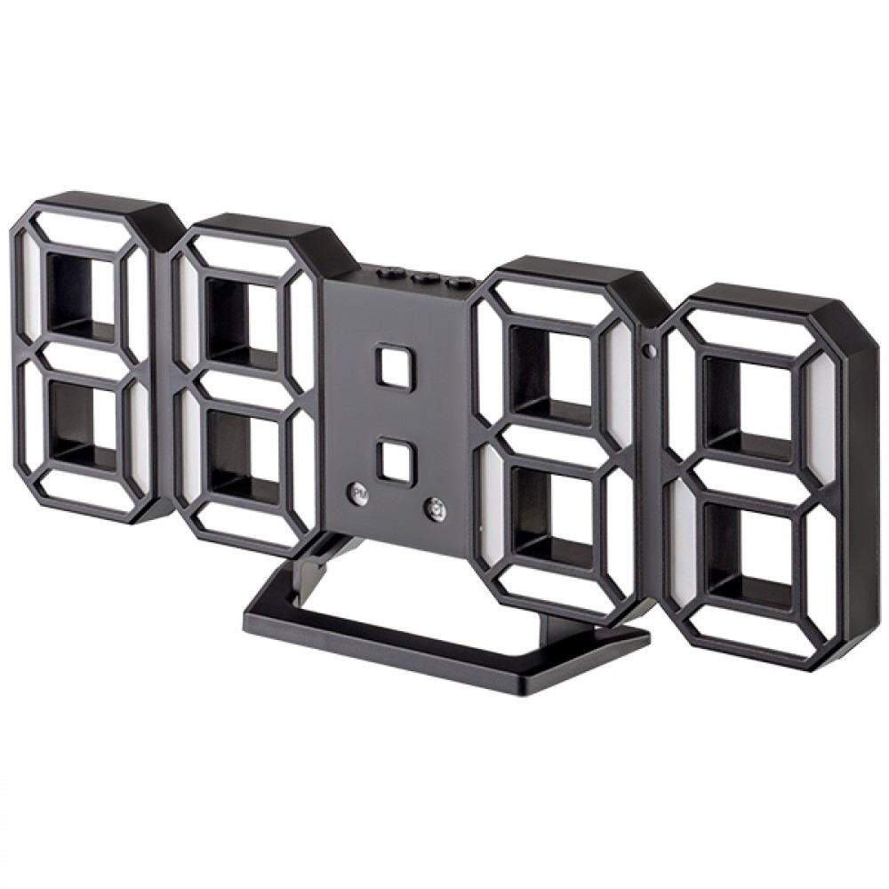 Часы-будильник Perfeo LED Luminous 2, черный корпус / белая подсветка (PF-6111)