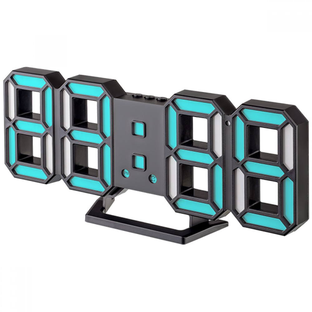 Часы-будильник Perfeo LED Luminous 2, черный корпус / синяя подсветка (PF-6111)