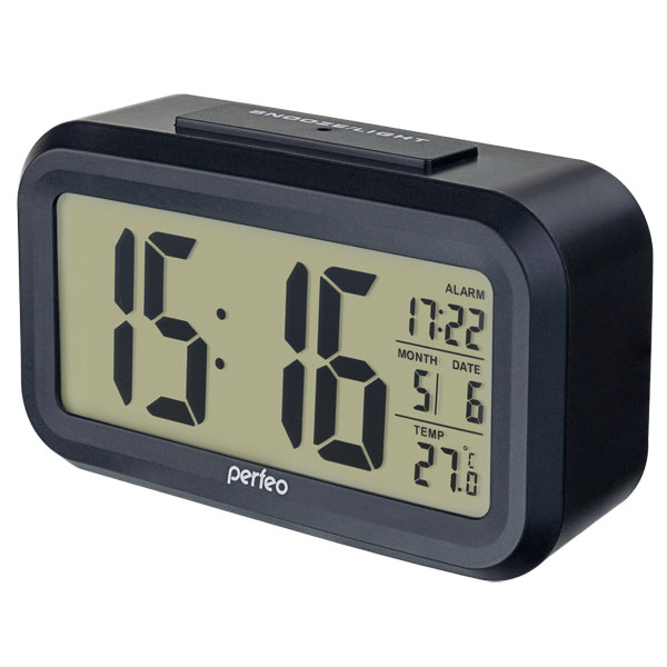 Часы-будильник Snuz имеют датчик освещённости, подсветка включается при наступлении темноты и недостаточном освещении, также есть принудительная более яркая подсветка дисплея. Часы-будильник умеют измерять температуру в помещении. Питание от 3 батареек ААА. На большом монохромном дисплее одновременно отображаются время, дата, день недели, время срабатывания будильника и температура. Встроенный будильник имеет функцию повтора.