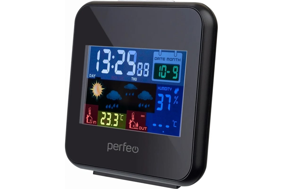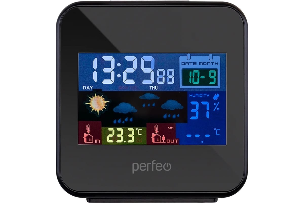 Часы-метеостанция Perfeo Blax PF-622BS позволят вам быть в курсе точной температуры вне помещения и внутри его, а также уровня влажности в помещении.