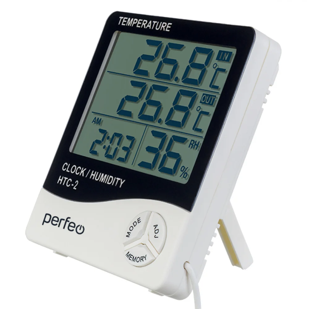 Цифровой дисплей с одновременным отображением времени, температуры внутри помещения и на улице (2 температуры) и влажности внутри помещения