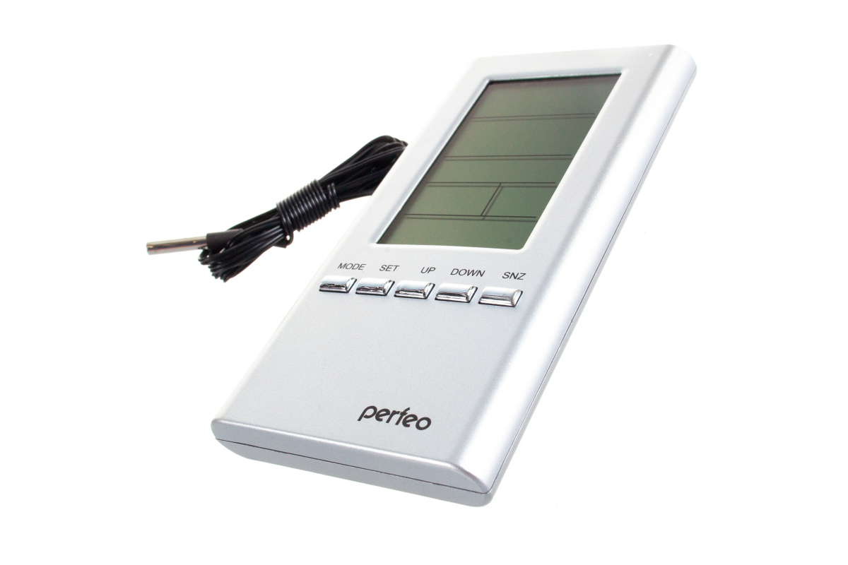 Часы-метеостанция PERFEO Meteo PF-S3331F серебряный 30 011 174 помогают измерять влажность воздуха и температуру в помещении. Благодаря выносному проводному датчику доступно измерение температуры и за окном. Также имеется встроенный будильник.