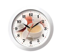 Настенные кварцевые часы "Troyka" с изображением чашки кофе с молоком, изготовленные из пластика, прекрасно подойдут под интерьер вашего дома. Круглые часы имеют три стрелки: часовую, минутную и секундную, циферблат защищен прозрачным пластиком.