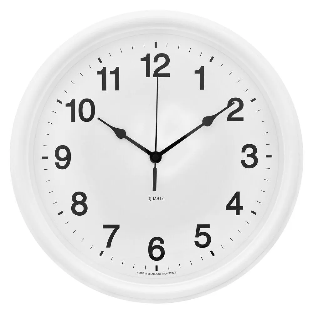 Круглые часы с белым корпусом и циферблатом будут отлично смотреться в любом помещении. Арабские цифры обеспечат легкость и удобство прочтения времени.