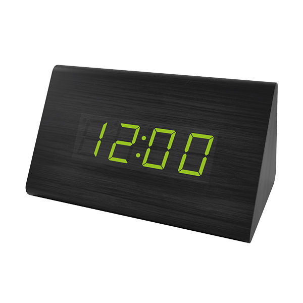 Perfeo LED часы-будильник Trigonal, чёрный / зелёная (PF-S711T) время, температура