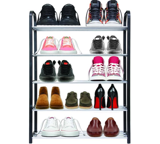 Этажерка для обуви изготовлена из нержавеющей стали. Данное преимущество позволяет размещать на ней мокрую обувь без риска, что она заржавеет. Очень удобная и компактная, но в тоже время вместительная этажерка прекрасно впишется в пространство вашей прихожей. Размер ДШВ: 23х58х68см.