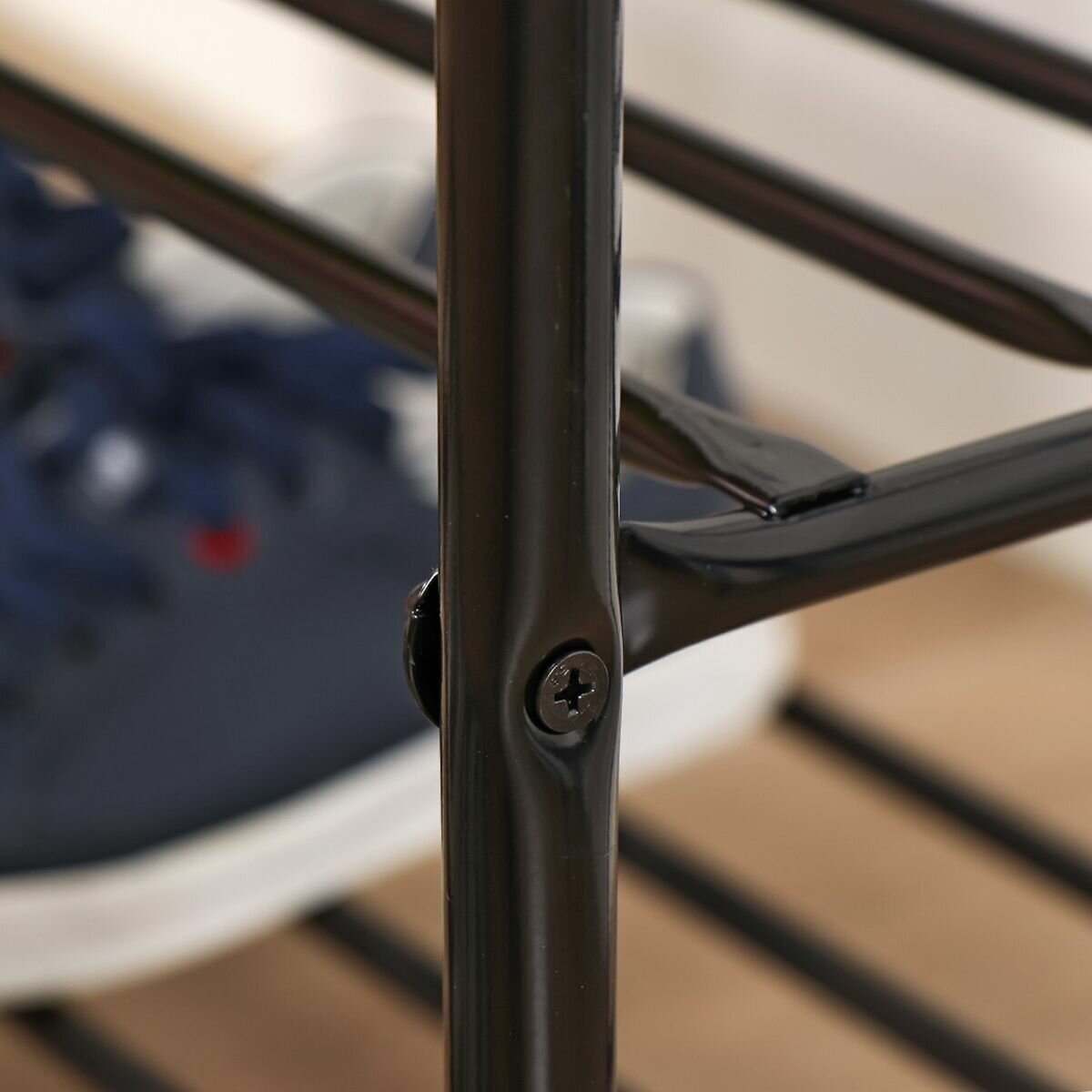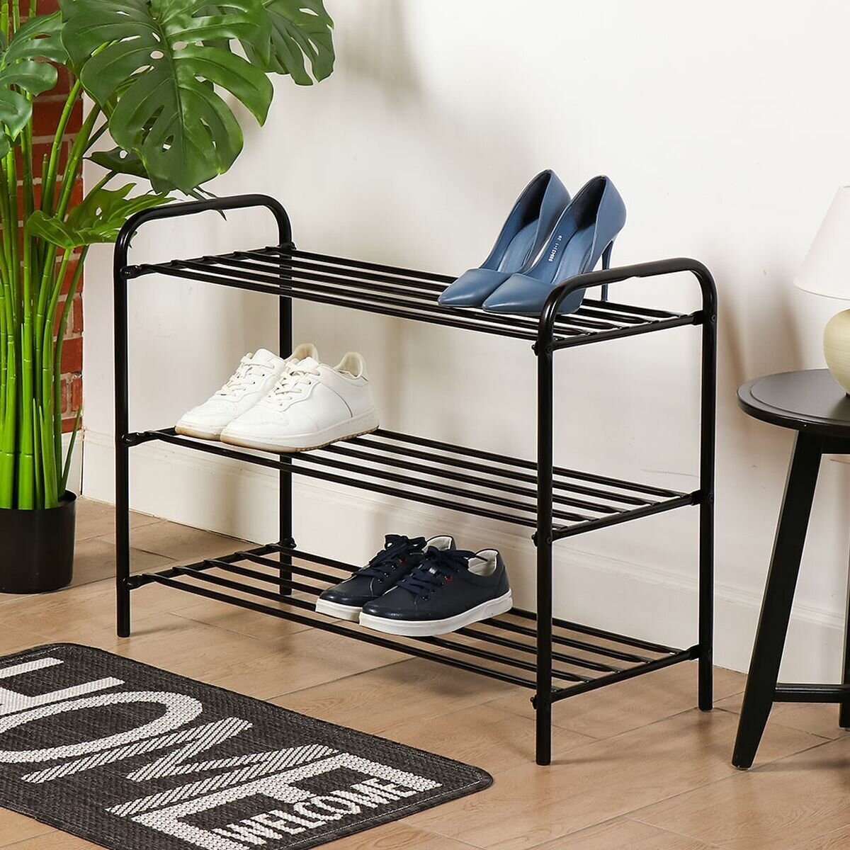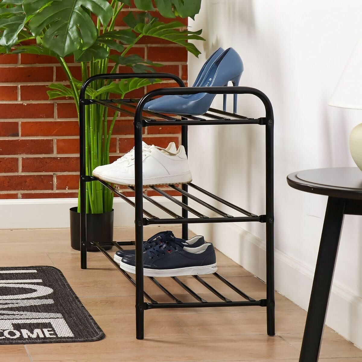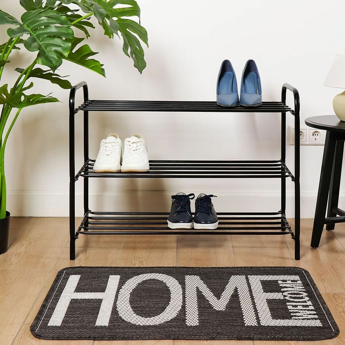Этажерка для обуви Nika КОМФОРТ 3 полки черная ЭТК3 имеет металлический каркас и отличается износостойкостью