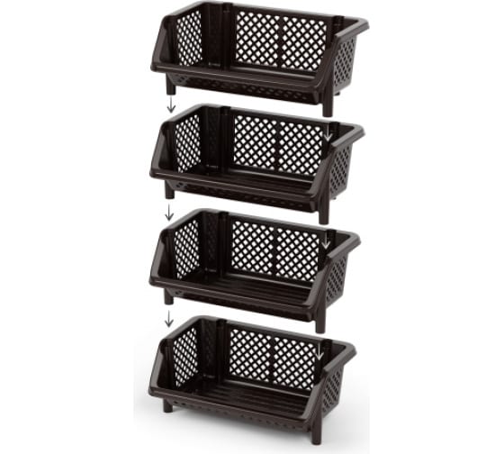 Этажерка предназначена для хранения различных предметов в вашем доме. Данное изделие поможет сэкономить пространство и хранить все полезные вещи под рукой. Благодаря прочному материалу можно класть множество вещей, не боясь, что данный продукт сломается или треснет. Каждая ячейка выдерживает до 80 кг, в собранном виде четыре секции выдерживают до 120 кг. При необходимости транспортировки или хранения, несколько ящиков можно компактно сложить друг в друга, и они займут минимум места. Удобное, вместительное и в то же время компактное изделие прекрасно впишется в пространство любой комнаты.