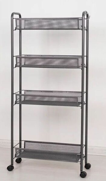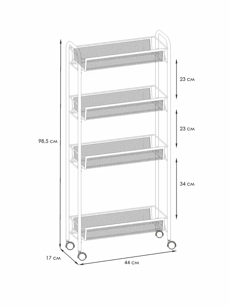- Металлическая тележка оснащена пластиковыми колёсами. Благодаря этому ее легко передвигать с места на место