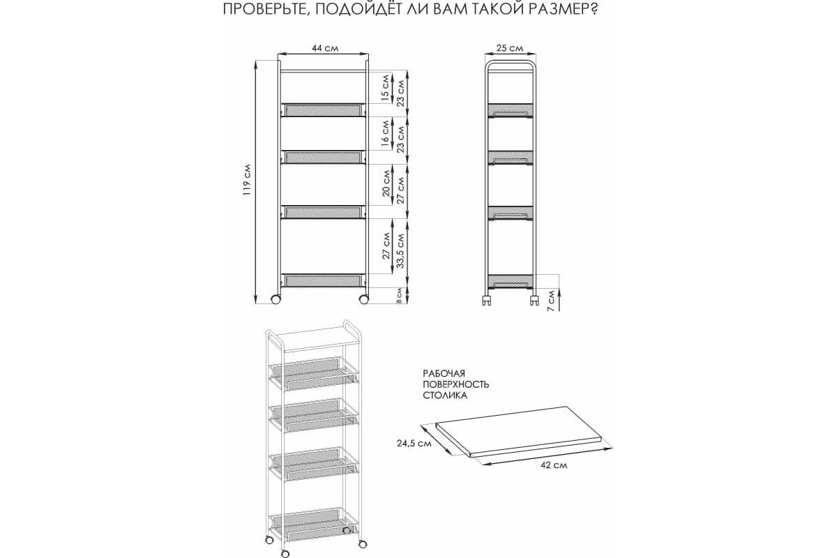 Этажерка имеет открытую конструкцию, за счет чего легко чистится, благодаря чему не требует сложного ухода.