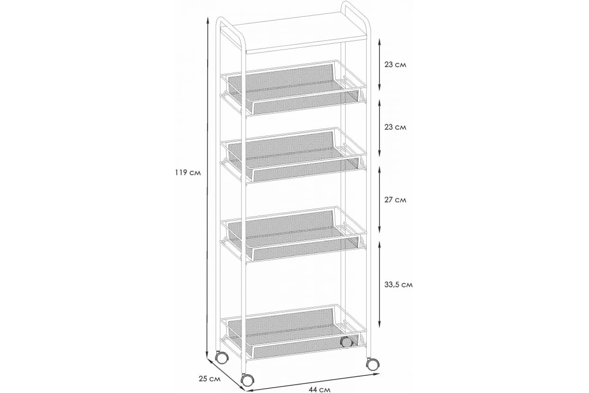 Этажерка-стеллаж для хранения ЗМИ Ладья 25КС 4 полки с колёсами цвет серый Э443С предназначена для хранения различных предметов.
