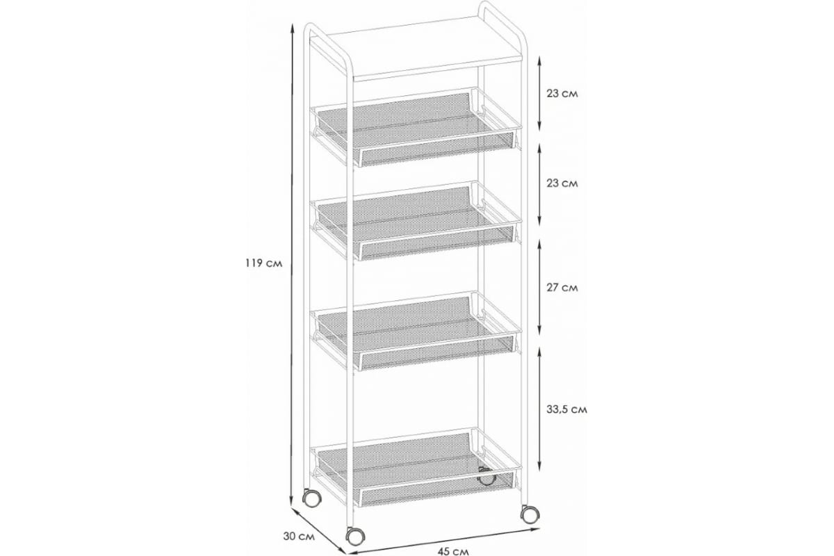 Этажерка имеет открытую конструкцию, за счет чего легко чистится, благодаря чему не требует сложного ухода.