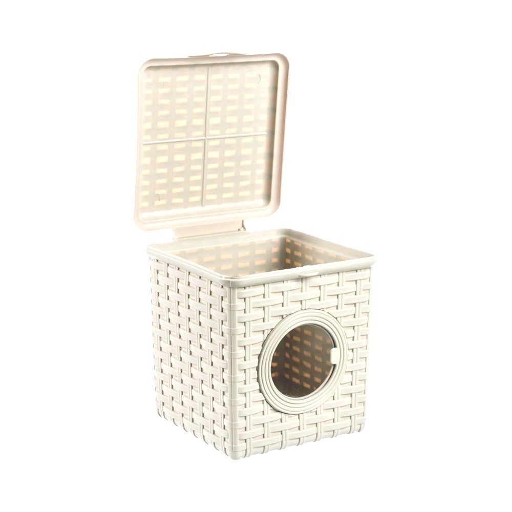 Емкость из пищевого пластика для хранения мелких аксессуаров и предметов домашнего обихода - прищепок, заколок, косметики, канцелярских товаров и т.д. Гармонично впишется в интерьер ванных комнат, постирочных и кладовых. На корпусе присутствует круглое окошко, что обеспечивает сходство контейнера с формой стиральной машинки и позволяет видеть содержимое. Текстура с имитацией натурального плетения «Ротанг» привнесет уют в ваш интерьер и создаст ощущение комфорта и гармонии.