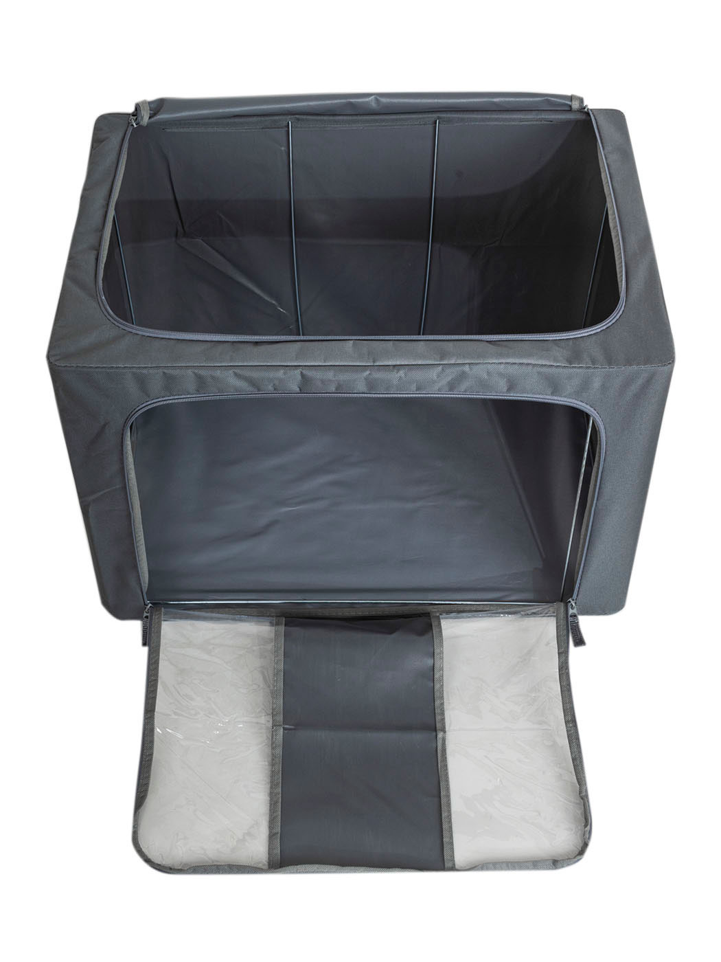 Благодаря жёсткой конструкции, кофр подходит как для открытых систем хранения в гардеробной, так и для шкафов-купе в спальне, детской, кладовой. Строгий и лаконичный дизайн органайзера позволяет ему вписаться в любой интерьер. Для большего удобства имеются прочные ручки для переноски. Вы можете не только хранить, но и перевозить одежду, игрушки, постельное белье и даже одеяла, ведь вместимость органайзера 100 литров.